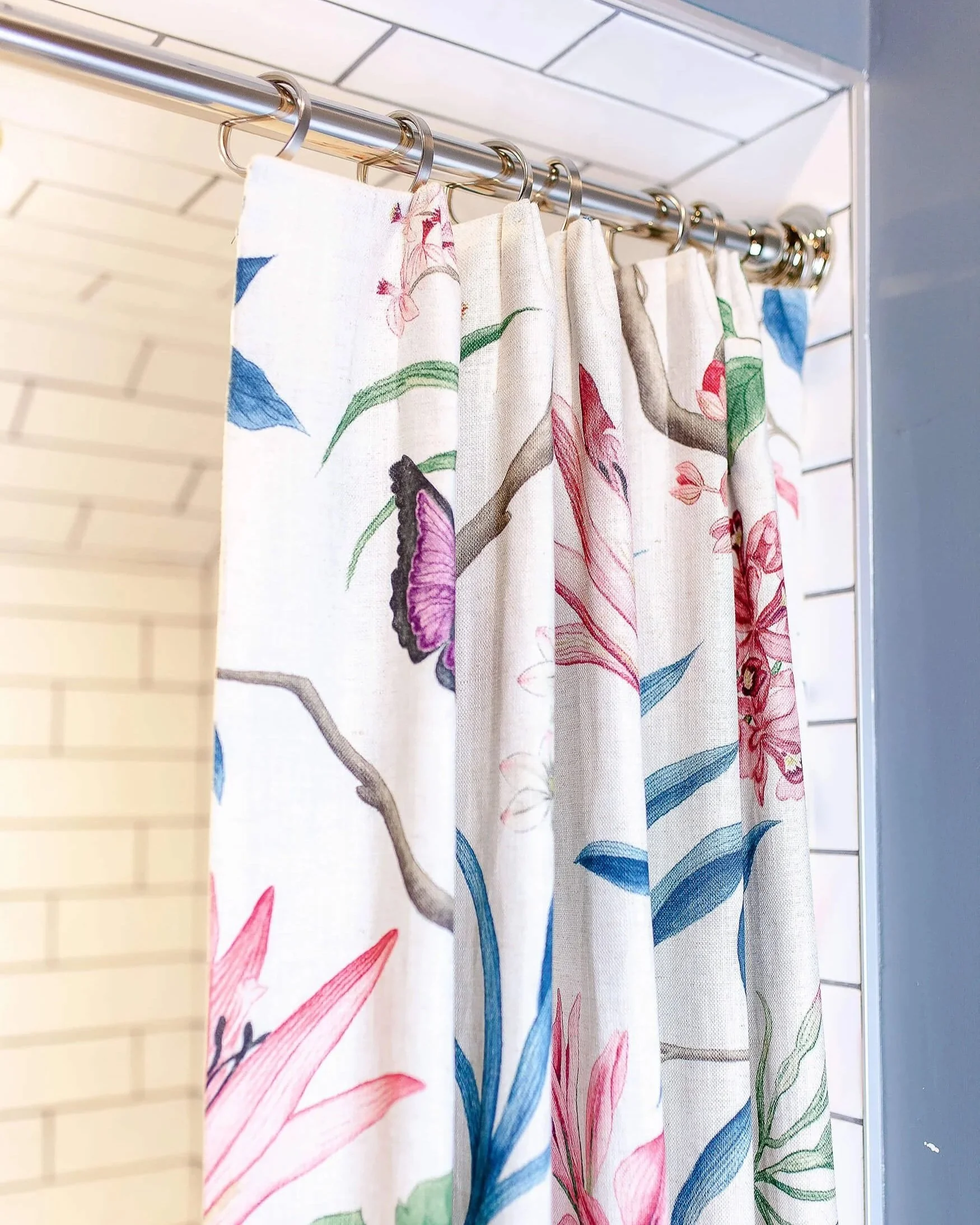 Our custom shower curtains are made to your shower’s measurements, so they will fit the space and provide privacy no matter how unusual the measurements or how awkward the rod placement is. We offer lined and unlined shower curtains in your fabric type, texture, color, and pattern. We can also work with various attachment styles, including rings and hooks.
